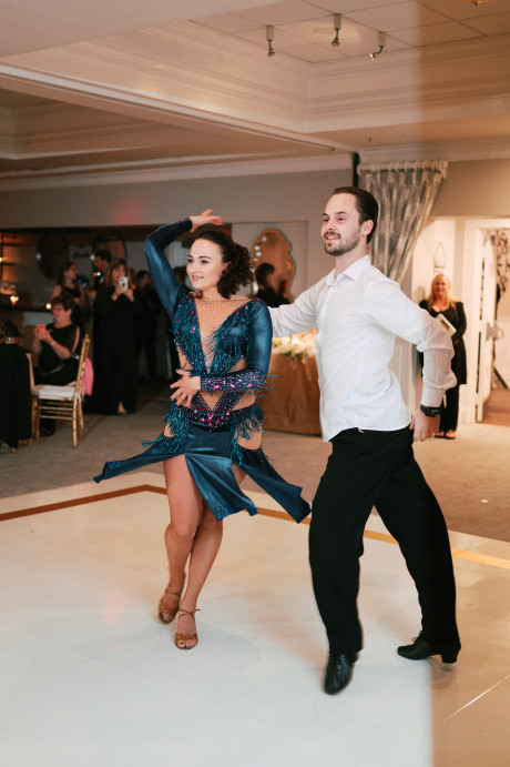 "Kyle and I surprised our families with professional ballroom dancers from Gold Ballroom Dance Studio in Lewes, DE. This was special to my parents because my dad and I learned a choreographed dance to “Butterfly Kisses” and “Let’s Groove Tonight” for our dance together. During our reception, the professional dancers performed the Rumba and Cha Cha, and then gathered everyone to join them on the dance floor for a line dance to “Can’t Stop the Feeling” by Justin Timberlake. Everyone was on their feet, and we were so grateful to successfully pull off a surprise since our parents did so much for us for the wedding!"