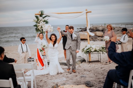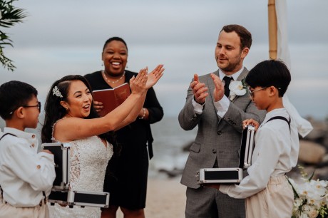 The couple opted not to have a traditional wedding party—instead, they opted to have their mothers standing at the altar with them.
