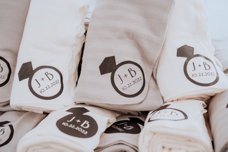 The bride and groom made custom blankets for the guests.