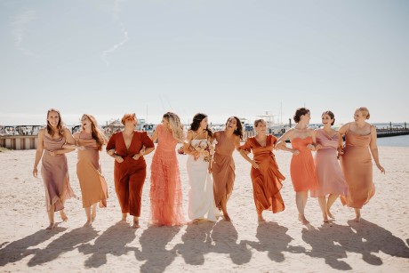 Colors: Sunset palette - Blush, Rust, Peach, Salmon & Mauve
