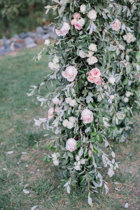Flowers by Mayumi constructed a beautiful flower wall, which served as a focal point throughout the evening. She also designed the chuppah, centerpieces, and even a floating arrangement for the pool!