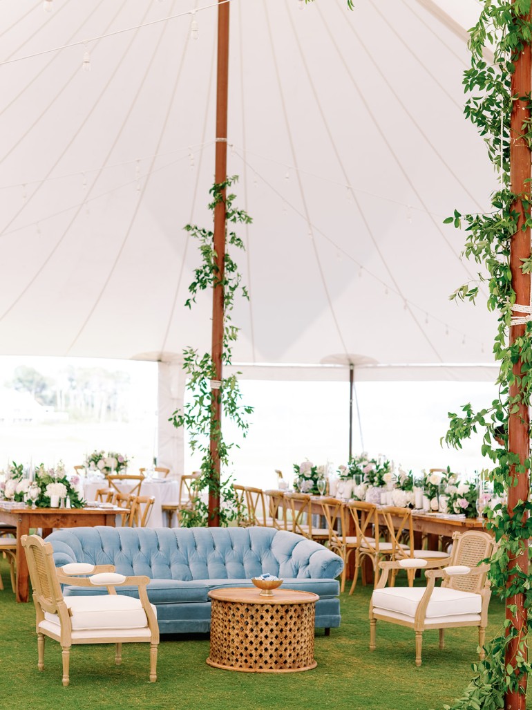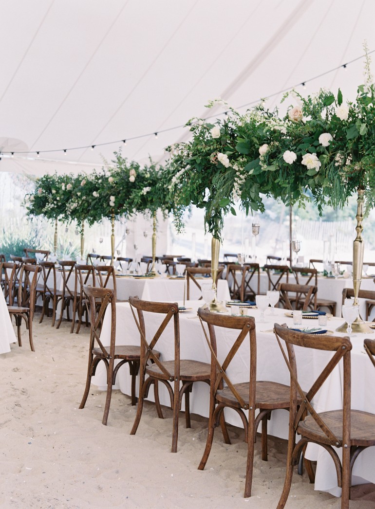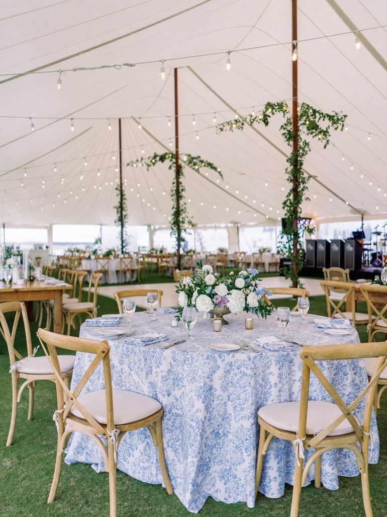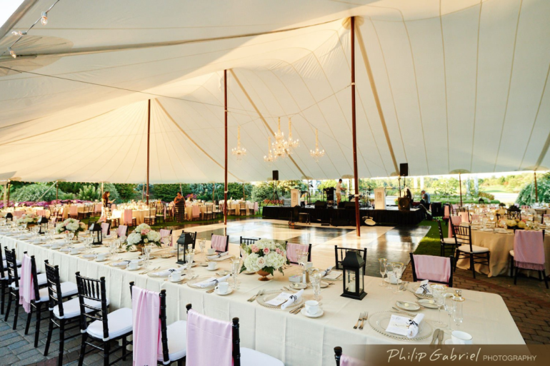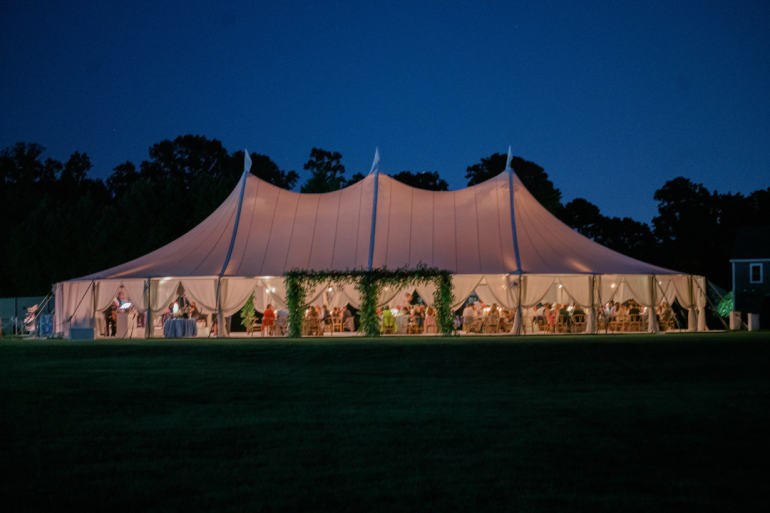 Check out Meghan + Matt’s gorgeous Sailcloth Wedding by Collective Event Group, held at Baywood.  Below are a few vantage points of the tent exterior and tent interior and set up! They selected black chiavari chairs and mixed round and king-width banquet tables for seating. You can view our chair rental selections, perfect for your Delaware Wedding here