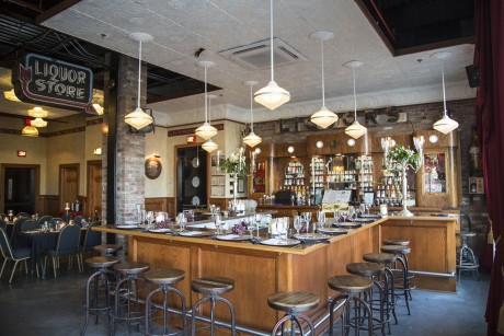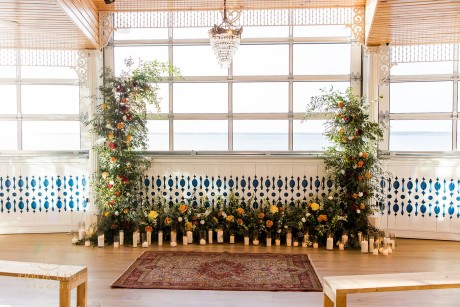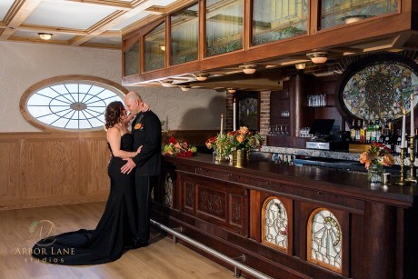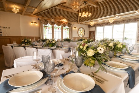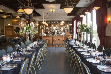 Also housed in the building is The Office. Reminiscent of an English pub, echoes of the above venue can be seen in more stunning stained glass, opulent chandeliers, and bay front windows. This space is ideal for wedding day prep, rehearsal dinners, and small dinner parties.