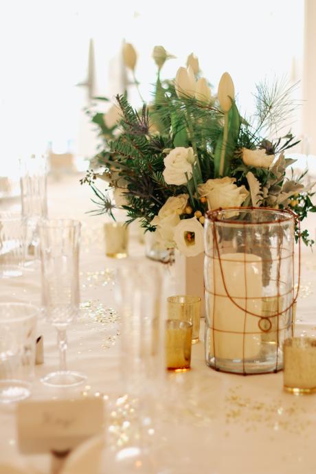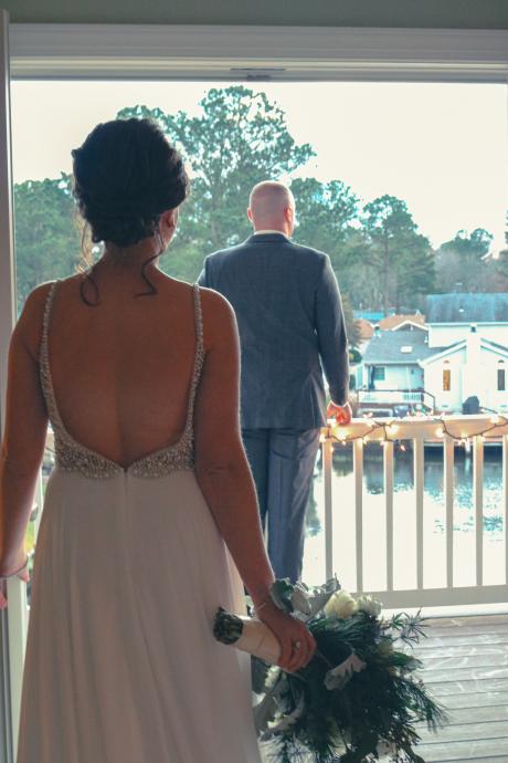 For "something old" the bride wore the groom's great-great grandmother's wedding ring.