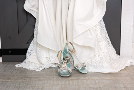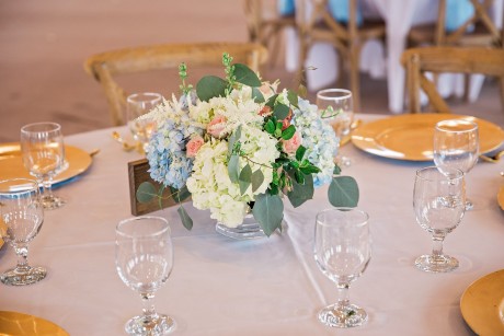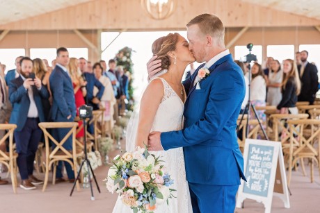 The couple performed a glass pouring ceremony, and later had a beautiful ornament and vase hand blown from the glass chips that were poured together.