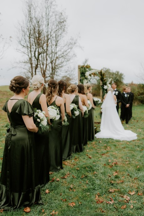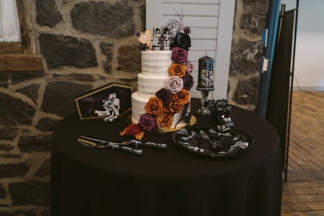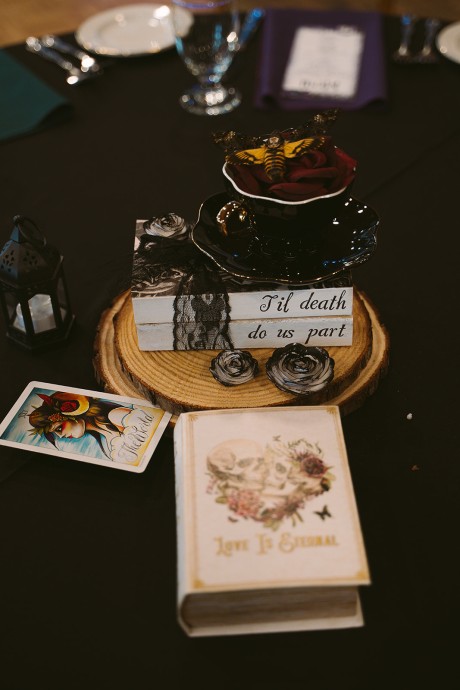 • Autumn — Halloween lovers, this is your season! Deep purples, black, rusty orange and forest green—it’s okay to go dark. Take it a step further with the themed concept and embrace the play on words with, “Till Death Do Us Part.”
