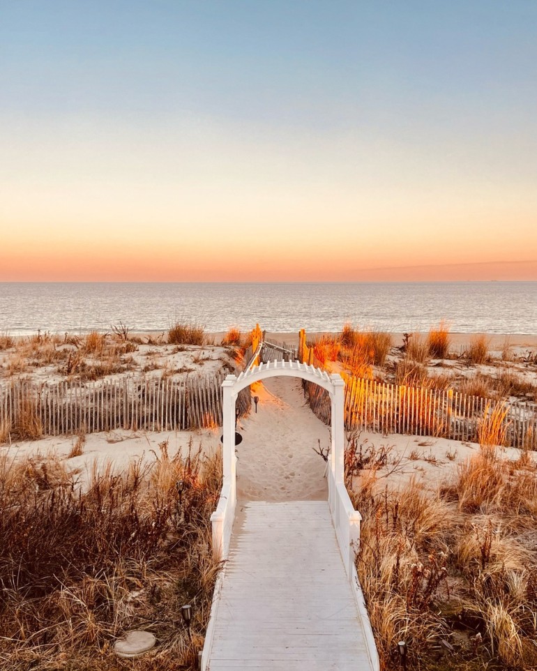 Newlyweds searching for an economic alternative to the tropical honeymoon should consider staying at Addy Sea, an oceanfront inn just steps off the sand in Bethany Beach. With its stately antique furniture and vintage wallpaper, the modern-meets-Victorian design of the main house impresses upon guests the structure’s historical significance.