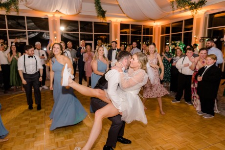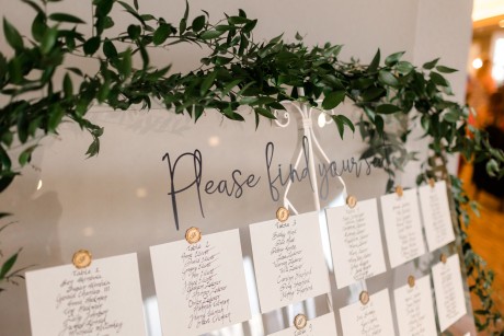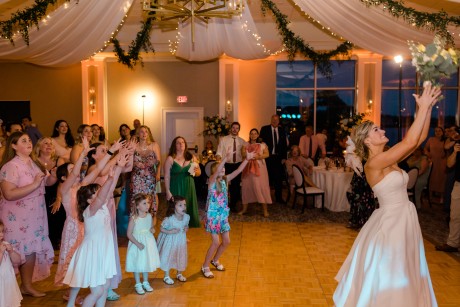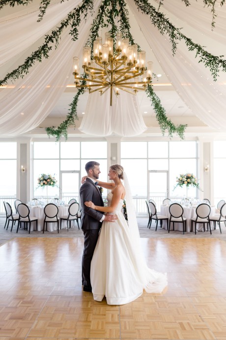 "We had a sketch artist who drew the bridal party and parents of the bride and groom throughout the ceremony. The pictures were then displayed so other guests could watch her and view her work. She was definitely a hit. During dinner, Ted and I also got on the mics and did a round of trivia. We had done Zoom trivia for our family and friends during the pandemic so we decided to do it one more time. This was a lot of fun as each table was a team, and it got people talking over a little competition."