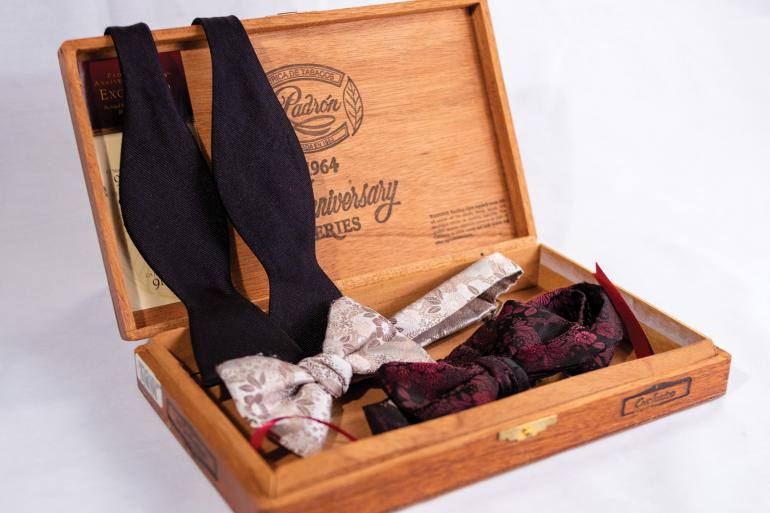 A note on bowties: While black may be the traditional choice, floral brocades and other patterns are an opportunity to create an eye-catching textured look.