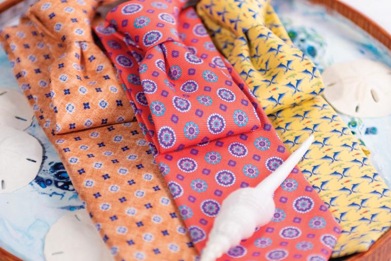 Trey Krauss, owner of Carlton’s in Rehoboth Beach, gave us a rundown of what’s currently trending in the world of men’s wedding attire and a selection of ties to help guide your choices. Keep in mind that what the men are wearing is just as important as the women’s gowns. When orchestrating wedding attire on the men’s side, Krauss said that, while the bride and bridesmaid gowns bring that pretty, softer side to the wedding party, “The men can be a solid foundation to tie it all together.”