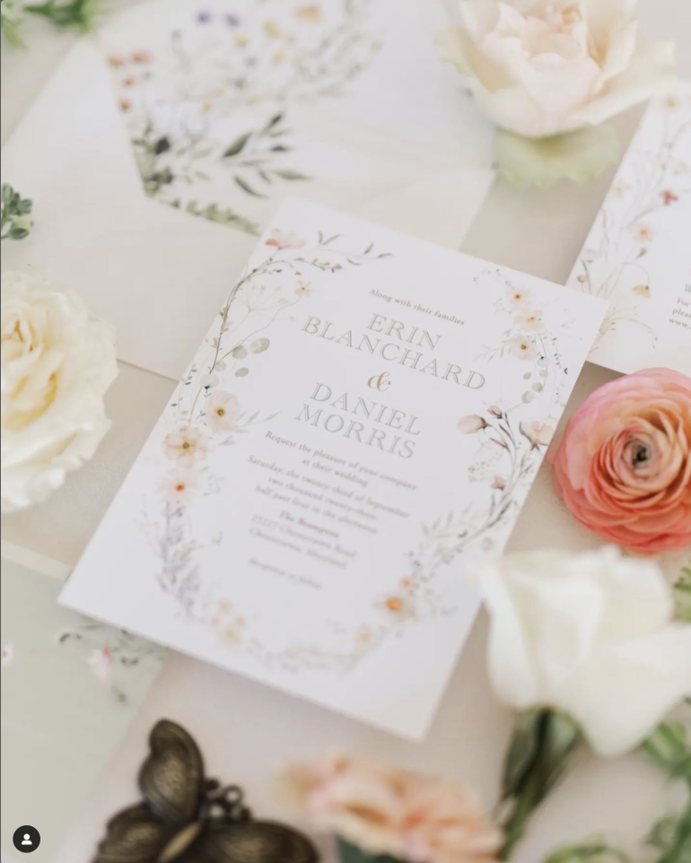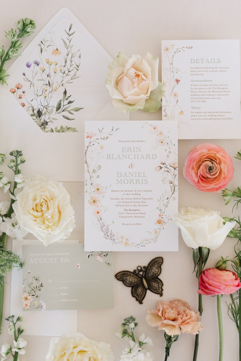 Wildflower motifs continue to be a favorite in 2024, especially for spring and summer weddings. Delicate wildflower blooms bring a natural and romantic touch to wedding invitations, setting an enchanting tone for the entire celebration. Whimsical floral designs, dainty fruit illustrations, and wildlife motifs add an organic beauty to the stationery, creating an inviting atmosphere for guests.