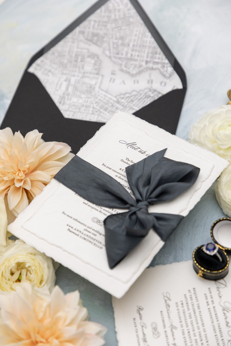 Handmade paper and deckled edges are making a significant impact in 2024. This trend harkens back to old-world beauty and elegant romance, reminiscent of past eras. Invitations made from handmade or seed-filled (plantable paper) are not only eco-friendly but also offer an understated elegance with timeless appeal. These letterpress invitations, featuring vintage monograms, watercolor venue illustrations, or fine art paintings on envelope liners, are perfect for couples seeking a blend of historical charm and environmental consciousness.