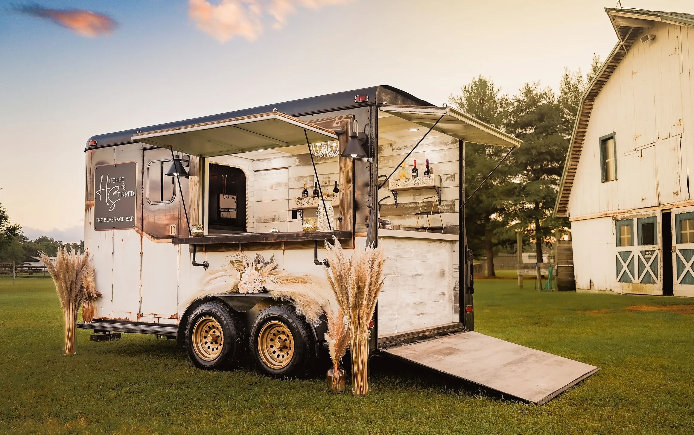 Combining her love for horseback riding, design, entertaining, and hospitality, Michelle envisioned a mobile bar with a vintage aesthetic that could easily fit into boho, barn, or beach-themed weddings.